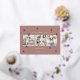 A modern and elegant Christmas holiday card design featuring three square photos aligned side by side on an earth tone terracotta background dotted with rose gold foil pine trees. Personalise with your custom holiday greeting, family name and the year.