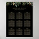 This gorgeous holiday wedding seating chart features an elegant botanical border along the top with faux gold leaves, Christmas greenery, and red holly berries on a modern black background. Perfect for your elegant winter wedding.