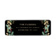 These gorgeous holiday return address labels feature festive boughs of gold leaves, Christmas greenery, and red holly berries on a modern black background. Perfect for your elegant winter wedding or Christmas cards.