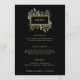 These stunning Christmas wedding menu cards feature holiday greenery and leaves with faux gold leaves and red holly berries, and a centre gold frame on a modern black background. These menus also work perfectly for any holiday party.