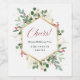 These gorgeous holiday wine labels feature a faux gold geometric frame with matching gold leaves, Christmas greenery, and red holly berries on a white background. The word "Cheers!" appears in modern red calligraphy. Perfect for your elegant winter wedding or party.