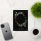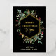 These gorgeous holiday photo cards feature a gold foil geometric frame with matching gold leaves, elegant Christmas greenery, and red holly berries on a dark, black background. Trendy gold typography says "Merry Christmas to you." Your personal photo goes onto the back of the card.