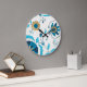 Gilded Indigo Flowers with White Background Large Clock