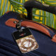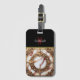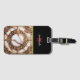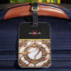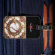 A square frame with ornate gold filigree surrounds a marble background, featuring a circular opening in the centre.