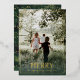 This delightful photo holiday card features a simple modern style with the word Merry and a vibrant green and gold background. All wording can be edited and personalised to your liking.