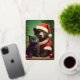 Add a touch of shimmering magic to your season's greetings with this elegant real foil holiday card. The design features a charming Santa bear and a sweet black kitten, with customisable text accented in beautiful foil.