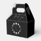 Elegant watercolor gilded moon phases frame, favour box in black.  Modern design style template provides lines for names and event date. "Thank you" white script graphic.