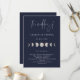 Elegant watercolor gilded moon phases, wedding program. Background features dark navy blue colour background.