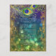 Gilded Peacock Feathers Jewel Gold Wedding Details Enclosure Card