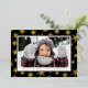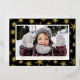 Elegant holiday photo card featuring your horizontal photo framed with a white border and beautiful gold foil snowflakes on a black background. Personalise the gold foil snowflake holiday card with a custom holiday greeting and your family name. The foil holiday card reverses to display a solid black background