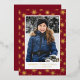 Elegant holiday photo card featuring your vertical photo framed by beautiful gold foil snowflakes with a cranberry background. Personalise the gold foil snowflake holiday card with a custom holiday greeting and your family name. The foil Christmas card reverses to a solid cranberry background.