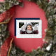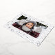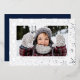 Elegant holiday photo card featuring your horizontal photo framed by beautiful silver foil snowflakes with a white background. Personalise the silver foil snowflake holiday card with a custom holiday greeting and your family name. The foil Christmas card reverses to a solid navy background.