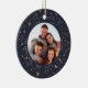 This festive and elegant holiday photo ornament feature a favourite photo on each side, framed by faux rose gold foil stars and snowflakes. Personalise with the year and your family name or individual names.