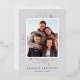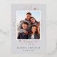 Chic and elegant holiday photo cards feature your favourite photo on a pastel grey background, framed with shining rose gold foil stars and snowflakes. Add your custom holiday message (shown with "Season's Greetings") and your names or family name. Personalise the back with two additional photos and the year on a contrasting charcoal grey background.