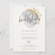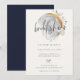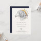 Elegant watercolor gilded moon adorned with wildflowers, bridal shower invitation. Elegant typography design style template with coordinating dark night navy blue colour backing.