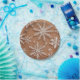 This delicate composition celebrates the intricate beauty of nature through a series of highly detailed snowflakes set against a warm, sandy ocher background. Each snowflake is rendered with fine, lace-like precision in a crisp white, creating a striking contrast that emphasizes their unique hexagonal symmetry. The background features a subtle, speckled texture reminiscent of falling frost or a light dusting of snow, while the overall warm tone lends a sophisticated, vintage holiday esthetic to the piece. The arrangement is organic yet balanced, capturing a frozen moment of winter elegance.