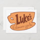 Celebrate the beloved charm of Stars Hollow with this Luke's Diner logo postcard. Featuring the iconic yellow coffee cup logo from Gilmore Girls, this design is perfect for fans of the show. Whether you're sending a note, adding to a collection, or displaying as decor, this postcard captures the cosy essence of everyone’s favourite diner.