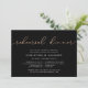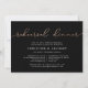 Our elegant, modern wedding rehearsal dinner or cocktail party invitations feature "rehearsal dinner" across the top in looping faux copper foil handwritten script typography on a rich black background. Personalise with your ceremony rehearsal and rehearsal dinner details beneath in modern white lettering. Includes space for the rehearsal timing and church or venue address. A chic design in rich colours for modern couples and elegant events.