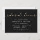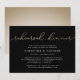 Our elegant, modern wedding rehearsal dinner or cocktail party invitations feature "rehearsal dinner" across the top in looping faux gold foil handwritten script typography on a rich black background. Personalise with your ceremony rehearsal and rehearsal dinner details beneath in modern white lettering. Includes space for the rehearsal timing and church or venue address. A chic design in rich colours for modern couples and elegant events.