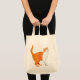A strong grocery tote bag with a ginger cat motif from a watercolor painting by Judy Adamson. See also matching gifts and apparel