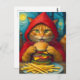 AI generated art of a ginger cat in a red rain jacket eating a huge cheeseburger and a plate of fries
