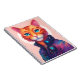 Pictured is a ginger cartoon cat in a colorful cyberpunk design