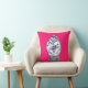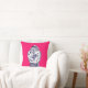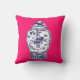 This pillow features an original painting by artist Anne Harwell of an antique Chinese porcelain ginger jar in delicate detail with blue and white on a deep pink background, with image on both front and back.