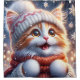 Celebrate the magic of winter with this charming artwork featuring an orange and white ginger kitten dressed in her best winter attire. The kitten, with wide eyes and a small open mouth and cute smile, wears a knitted hat with a white pom-pom, along with a matching sweater in shades of white, orange, and grey. Snowflakes gently fall around her, capturing the awe and excitement of experiencing her first snowfall. This design is perfect for adding a touch of whimsy and warmth to any space, making it ideal for winter, Christmas or holiday-themed decor.