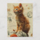 Ginger Kitten Yarn Collage Mixed Media Postcard