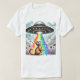 A cute ginger kitty welcomes a UFO beaming down watercolor rainbow beams in a wildflower meadow fantasy scifi art AI generated art