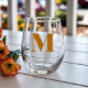 Ginger Modern Monogram Initial Letter Stemless Wine Glass