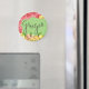 A classic round Refrigerator Magnet that displays illustration of ginger spice with roots, blossom, leaves and inscription. Ideal for your kitchen decor or magnetic containers.