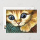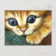 Ginger tabby playing with wool postcard
