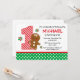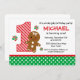 Cute Christmas 1st birthday design with a candy cane striped number 1, adorable little gingerbread boy and red and green striped peppermint candies. PinkInkArt original!.