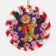 Hang this jolly gingerbread cookie in your window or on your tree! He's surrounded by bright Christmas colours and holiday peppermints and candy canes, and will stand out brightly anywhere you put him. Design is composed of original art by Eve Hannigan.
