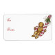 A cute gingerbread boy is swinging on a candy cane on this gift tag label. Use these holiday labels for all of your Christmas gifts. The design is from original art.