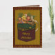 Red and gold decorated paper background with a pocket filled with cute gingerbreadmen, gold Christmas decoration, and a couple of fir twigs. The inside of the card has template fields for your personal messages.