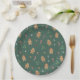 Cute and festive gingerbread people paper plates perfect for a Christmas baby shower, gender reveal or holiday party. The design is illustrated with gingerbread boy and girl, candy canes and holly on a dark green background.