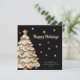 Celebrate the warmth and sweetness of the holiday season with this charming gingerbread Christmas tree card. Adorned with delightful gingerbread cookies shaped like hearts, stars, and festive figures, this design brings a cozy and rustic feel to your greetings. Delicate snowflakes drift across the deep black background, creating a magical winter wonderland ambiance. The heartfelt 'Happy Holidays' message is elegantly scripted, inviting you to share your love and well wishes. This card is perfect for sending season's greetings to friends and family, embodying the joy and spirit of Christmas with its unique, whimsical charm and delectable gingerbread motif. Share a little bit of holiday sweetness with everyone you care about.