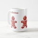 Cute gingerbread man cookie mug with white accents. Festive for holidays. “ Merry Christmas” in brick red coloured script can be edited to a custom name or text of your choice.