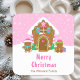 This cute and festive coaster features a cute gingerbread house decorated with pink and green candy. Beside it are adorable gingerbread men with gifts, dressed in Santa hats and a scarf. In the background is a bright pink winter sky with elegant falling snowflakes. The text combines decorative and sans serif fonts for a stylish and modern look. This is perfect for a Christmas gingerbread house decorating party.