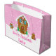 Gingerbread House Bright Pink Merry Christmas Large Gift Bag