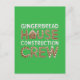 The image features the words "GINGERBREAD HOUSE CONSTRUCTION CREW" written in a playful and decorative style. Each letter is designed to resemble a gingerbread cookie, complete with icing details and decorative elements like candy canes and sprinkles. The overall design is festive and reminiscent of the holiday season.
