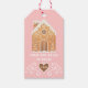 These gingerbread house gift tag is perfect for addressing gifts this year. The front says "From our house to yours." You can personalise with the year. Colours include, brown, pink and white.