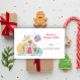 Watercolor gingerbread house. Invitation baby shower Christmas party. Decorate the gingerbread house with Christmas candies, candy cane, orange slice and gingerbread cookies.
