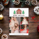Christmas photo card with a gingerbread house with two gingerbread trees decorated with white, red, and green frosting. Add three photos of your family!