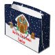Gingerbread House Navy and Red Merry Christmas Large Gift Bag