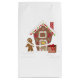 Cute gingerbread house all decked out with lots of sweets, a gingerbread man beside it.