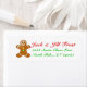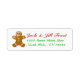 Gingerbread man with green and orange button address labels.