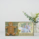 The background of this photo greeting card has a photograph of a gingerbread man on a cooling rack on a green tablecloth. Customisable text for your name. Upload your own photo and this card is ready to go! Buy in bulk and save!